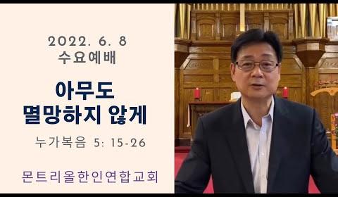 2022.6.8 / 수요예배 / 한 영혼 한 영혼 아무도 멸망하지 않게 / 누가복음 5: 15-26 / 몬트리올 한인연합교회 / 김진식목사