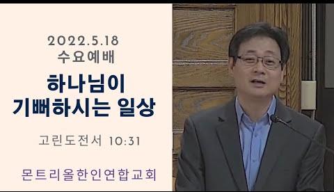 2022.05.18/수요예배 / 하나님이 기뻐하시는 일상 / 고린도전서 10: 31 / 몬트리올 한인연합교회 / 김진식목사