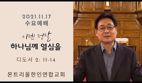 2021.11.17/수요예배/이젠 정말 하나님께 열심을/디도서 2: 11-14/몬트리올 한인연합교회 /김진식목사