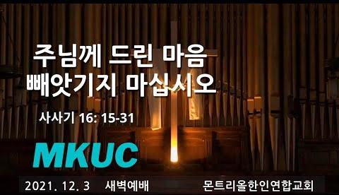 2021.12.3/새벽예배/주님께 드린 마음, 빼앗기지 마십시오/사사기 16: 15-31/몬트리올 한인연합교회 /김진식목사