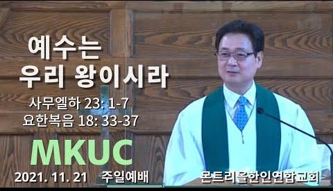2021.11.21/주일예배/예수는 우리 왕이시라/사무엘하 23: 1-7 요한복음 18:33-37/몬트리올 한인연합교회/김진식목사.