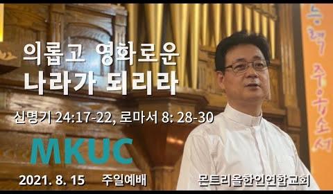 2021.08.15/주일예배/의롭고 영화로운 나라가 되리라/신명기 24: 17-22, 로마서 8:28-30/몬트리올 한인연합교회/김진식 목사.