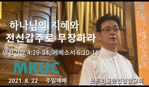 2021.08.22 /주일예배/하나님의 지혜와 전신갑주로 무장하라/열왕기상4:29-34, 에베소서 6:10-18/몬트리올 한인연합교회/김진식 목사.
