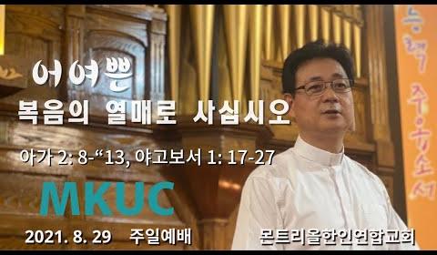 2021.08.29/주일예배/어여뿐 복음의 열매로 사십시요/아가 2:8-13, 야고보서 1:17-27/몬트리올 한인연합교회/김진식 목사.