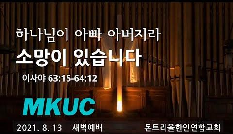 2021.8.13/새벽예배/하나님이 아빠 아버지라 소망이 있습니다/이사야 63: 15-64:12/몬트리올 한인연합교회/김진식목사