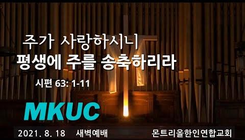 2021.8.18/새벽예배/주가 사랑하시니 평생에 주를 송축하리라/시편 63:1-11/몬트리올 한인연합교회/김진식목사