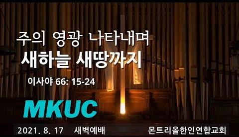 2021.8.17/새벽예배/주의 영광 나타내며 새하늘 새땅까지/이사야 66: 15-24/몬트리올 한인연합교회/김진식목사