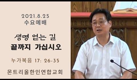 2021.8.25/수요예배/생명 얻는 길 끝까지 가십시오/누가복음 17:26-35/몬트리올한인연합교회/김진식목사
