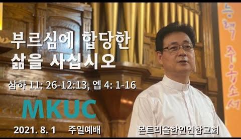 2021.8.1/주일예배/부르심에 합당한 삶을 사십시요/사무엘하 11:26-12:13, 에베소서 4: 1-16/몬트리올 한인연합교회/김진식목사