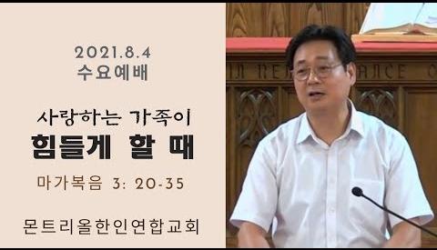 2021.8.4/수요예배/사랑하는 가족이 힘들게 할 때/마가복음 3: 20-35/몬트리올 한인연합교회 /김진식목사