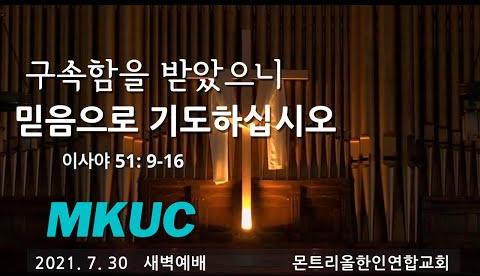 2021.7.30/새벽예배/구속함을 받았으니 믿음으로 기도하십시오/이사야 51: 9-16/몬트리올 한인연합교회/김진식목사