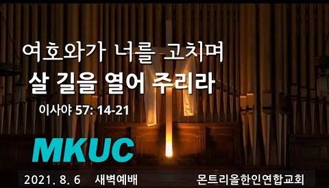 2021.8.6/새벽예배 /여호와가 너를 고치며 살 길을 열어 주리라/이사야 57: 14-21/몬트리올 한인연합교회/김진식목사