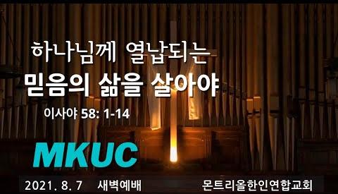 2021.8.7/새벽예배/하나님께 열납되는 믿음의 삶을 살아야/이사야 58: 1-14/몬트리올 한인연합교회/김진식목사