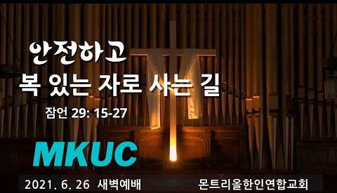 2021.6.26/새벽예배/안전하고 복 있는 자로 사는 길/잠언 29: 15-27/몬트리올 한인연합교회/김진식목사