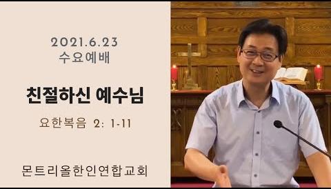 2021.6.23/수요예배/친절하신 예수님/요한복음 2장 1절 ~ 11절/몬트리올 한인연합교회/김진식목사