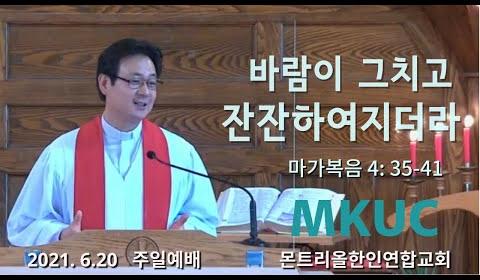 2021.06.20 주일예배/바람이 그치고 잔잔하여지더라/마가복음 4:35-41/몬트리올 한인연합교회/김진식 목사.