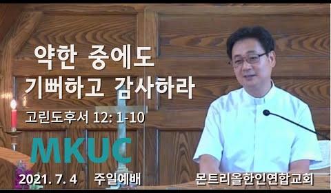 2021.07.04/주일예배/약한중에도 기뻐하고 감사하라/고린도후서 12: 1-10/몬트리올 한인연합교회/김진식 목사.