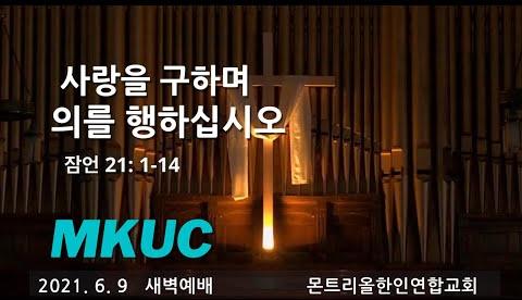 2021.6.9/새벽예배/사랑을 구하며 의를 행하십시오/잠언 21: 1-14/몬트리올 한인연합교회/김진식목사