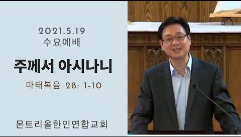 2021.5.19/수요예배/주께서 아시나니/마태복음 28: 1-10/몬트리올 한인연합교회/김진식목사