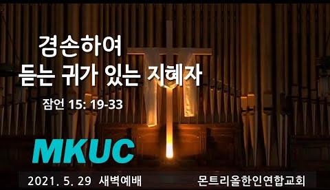 2021.5.29/새벽예배/겸손하여 듣는 귀가 있는 지혜자/잠언 15: 19-33/몬트리올 한인연합교회/김진식목사