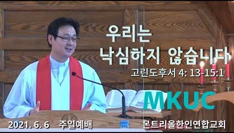 2021.06.06 주일예배/우리는 낙심하지 않습니다/고린도후서 4: 13-5:1/몬트리올 한인연합교회/김진식 목사.