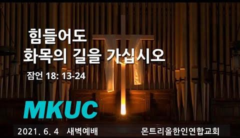2021.6.4/새벽예배/힘들어도 화목의 길을 가십시오/잠언 18: 13-24/몬트리올 한인연합교회/김진식목사