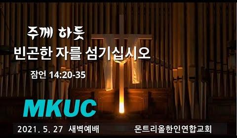 2021.5.27/새벽예배/주께 하듯 빈곤한 자를 섬기십시오/잠언 14: 20-35/몬트리올 한인연합교회/김진식목사