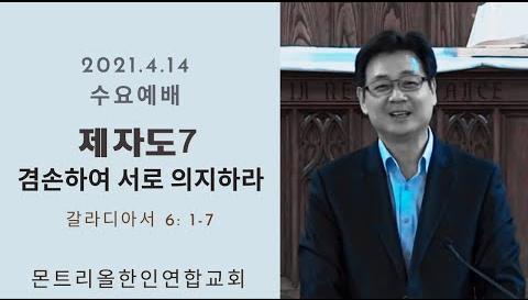 2021 04 14 /수요예배/제자도7 겸손하여 서로 의지하라/갈라디아서 6: 1-7/몬트리올한인연합교회/김진식목사