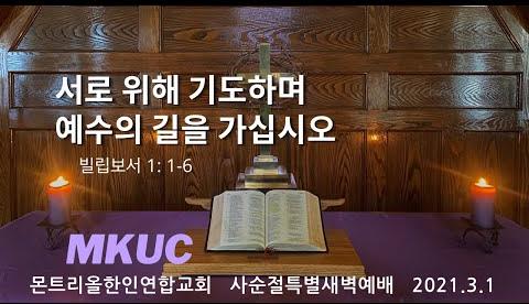2021.3.1/사순절특새 11/서로 위해 기도하며 예수의 길을 가십시오/빌립보서 1: 1-6/몬트리올한인연합교회/김진식목사