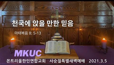 2021.3.5/사순절특새 15/천국에 앉을 만한 믿음/마태복음 8: 5-13/몬트리올한인연합교회/김진식목사