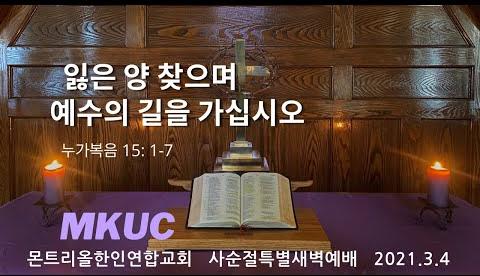 2021.3.4/사순절특새 14/잃은 양 찾으며 예수의 길을 가십시오/누가복음 15: 1-7/몬트리올한인연합교회/김진식목사