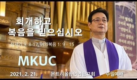 2021.02.21 주일예배/회개하고 복음을 믿으십시오/마가복음 1: 9-15 /몬트리올 한인연합교회/김진식 목사