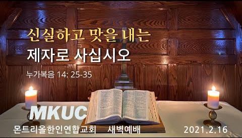 2021.2.16 새벽예배/신실하고 맛을 내는 제자로 사십시오/누가복음 14: 25-35