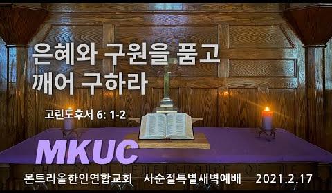 2021.2.17.사순절 특새 01/은혜와 구원을 품고 깨어 구하라/고린도후서 6: 1-2/몬트리올한인연합교회/김진식목사