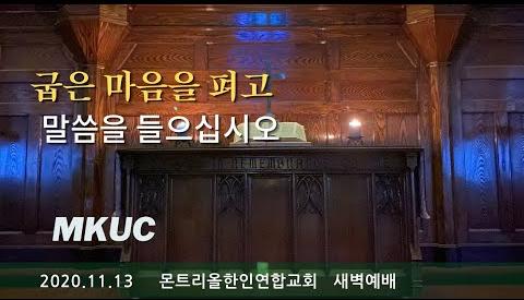 2020.11.13 새벽예배/굽은 마음을 펴고 말씀을 들으십시오/역대하 10: 1-19/몬트리올 한인연합교회/김진식 목사
