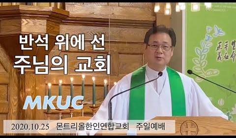 2020.10.25 주일예배/반석 위에 선 주님의 교회/마태복음 16: 13-25/몬트리올 한인연합교회/김진식 목사