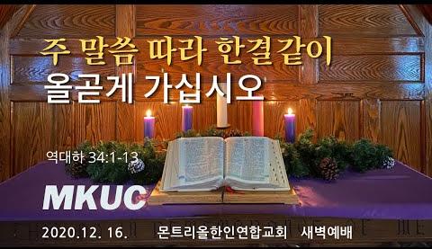 2020.12.16 새벽예배/주 말씀 따라 한결같이 올곧게 가십시오/역대하 34: 1-13/몬트리올 한인연합교회/김진식 목사