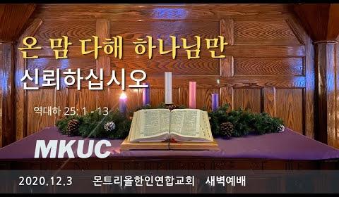 2020.12.3 새벽예배/온 맘 다해 하나님만 신뢰하십시오/역대하 25: 1 - 13/몬트리올한인연합교회/김진식 목사