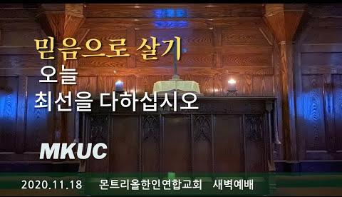 2020.11.18 새벽예배/믿음으로 살기 오늘 최선을 다하십시오/역대하 15: 1-19/몬트리올한인연합교회/김진식 목사