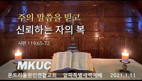 2021.01.11 알파특새/주의 말씀을 믿고 신뢰하는 자의 복/시편 119: 65-72/몬트리올한인연합교회/김진식목사