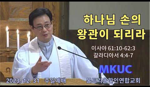 2023.12.31 /주일예배/하나님 손의 왕관이 되리라/이사야61:10-62:3 갈라디이아서4:4-7/몬트리올한인연합교회/김진식목사.