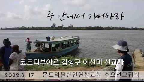 2022.8.17 / 수요선교집회 / 주 안에서 기뻐하라 / 빌립보서 3: 1-7 / 몬트리올 한인연합교회 / 코트디부아르 김형구 이선미 선교사