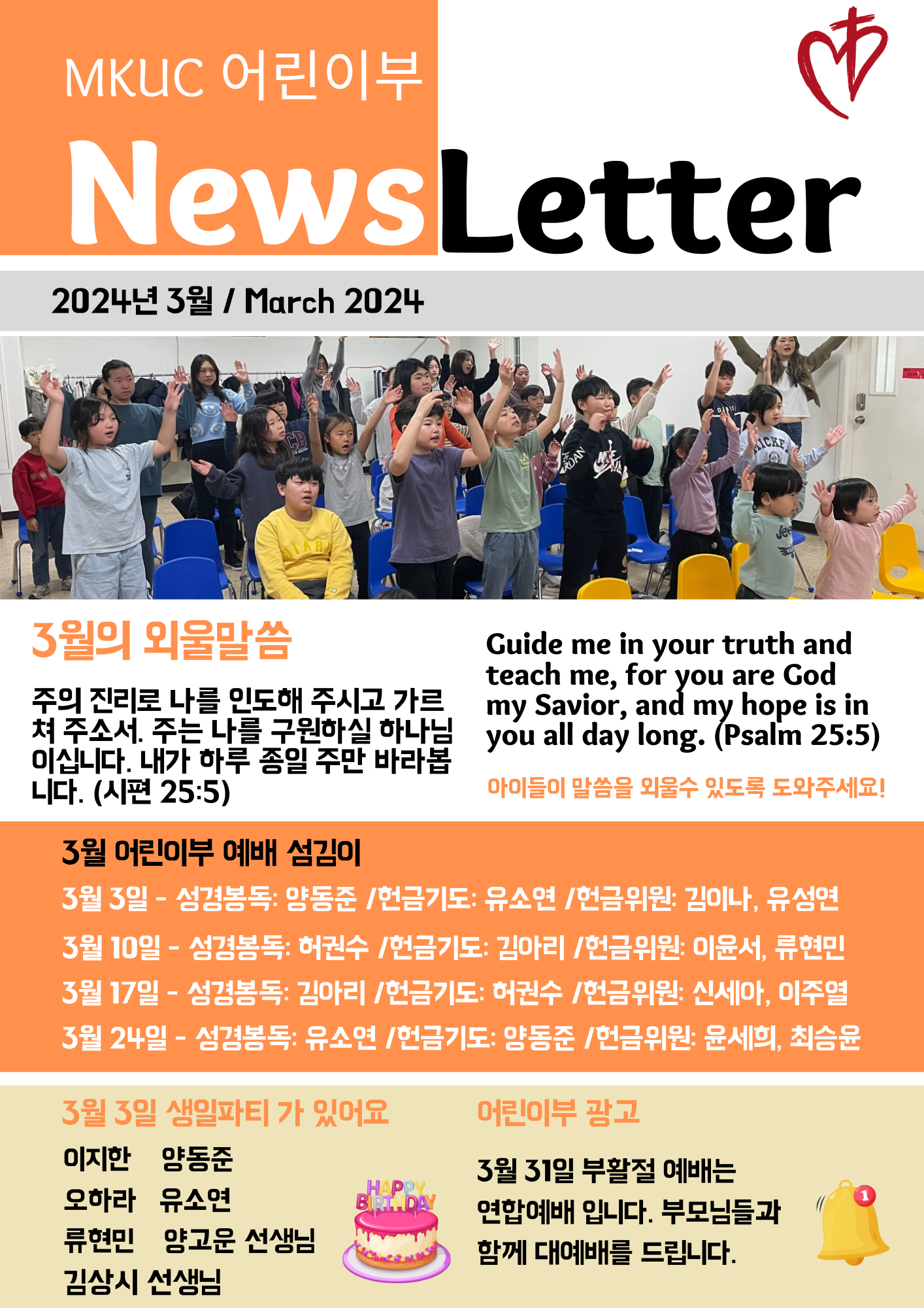 MKUC 어린이부 2024년 3월 Newsletter 입니다 - PART 1