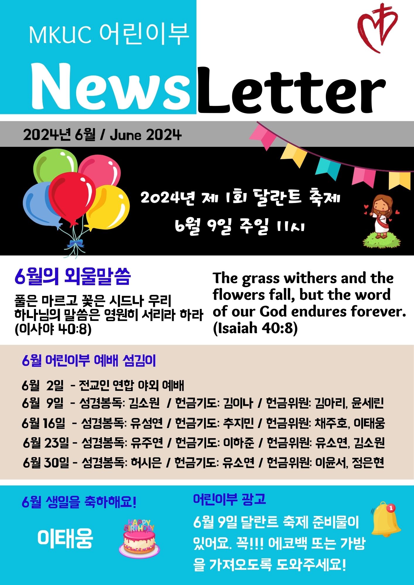 MKUC 어린이부 2024년 6월 Newsletter 입니다 - PART 1