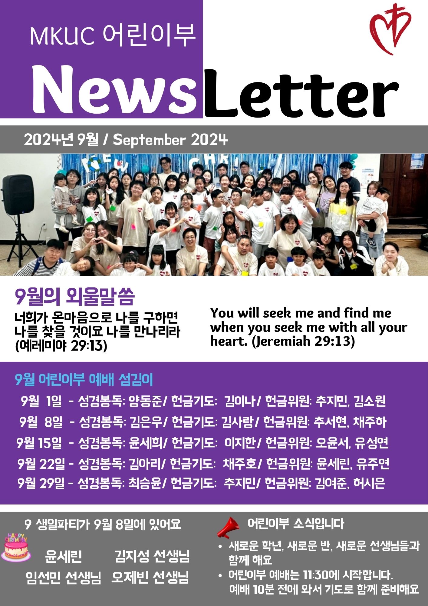 MKUC 어린이부 2024년 9월 Newsletter 입니다 - PART 1