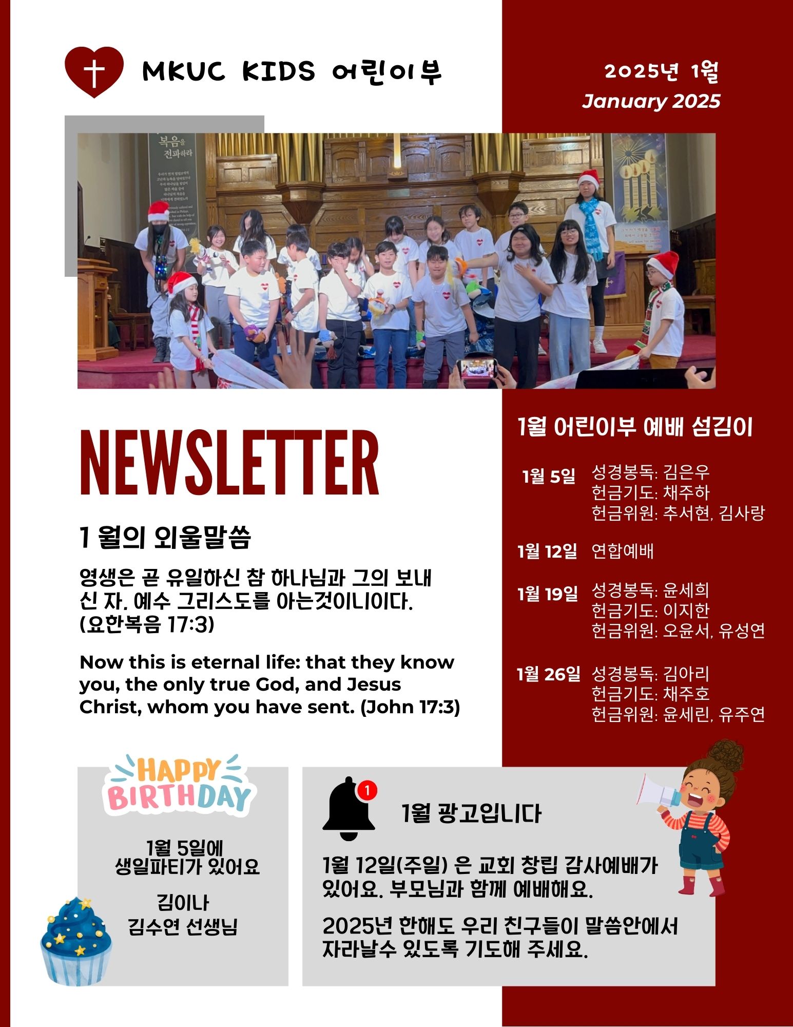 MKUC 어린이부 2025년 1월 Newsletter 입니다 - PART 1