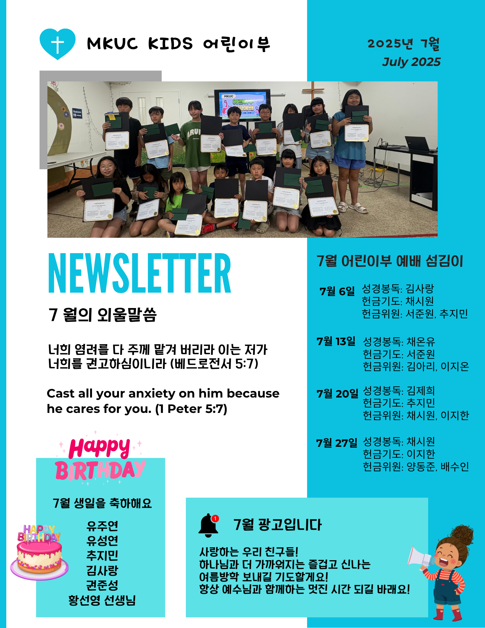 MKUC 어린이부 2025년 7월 Newsletter 입니다 - Part 1