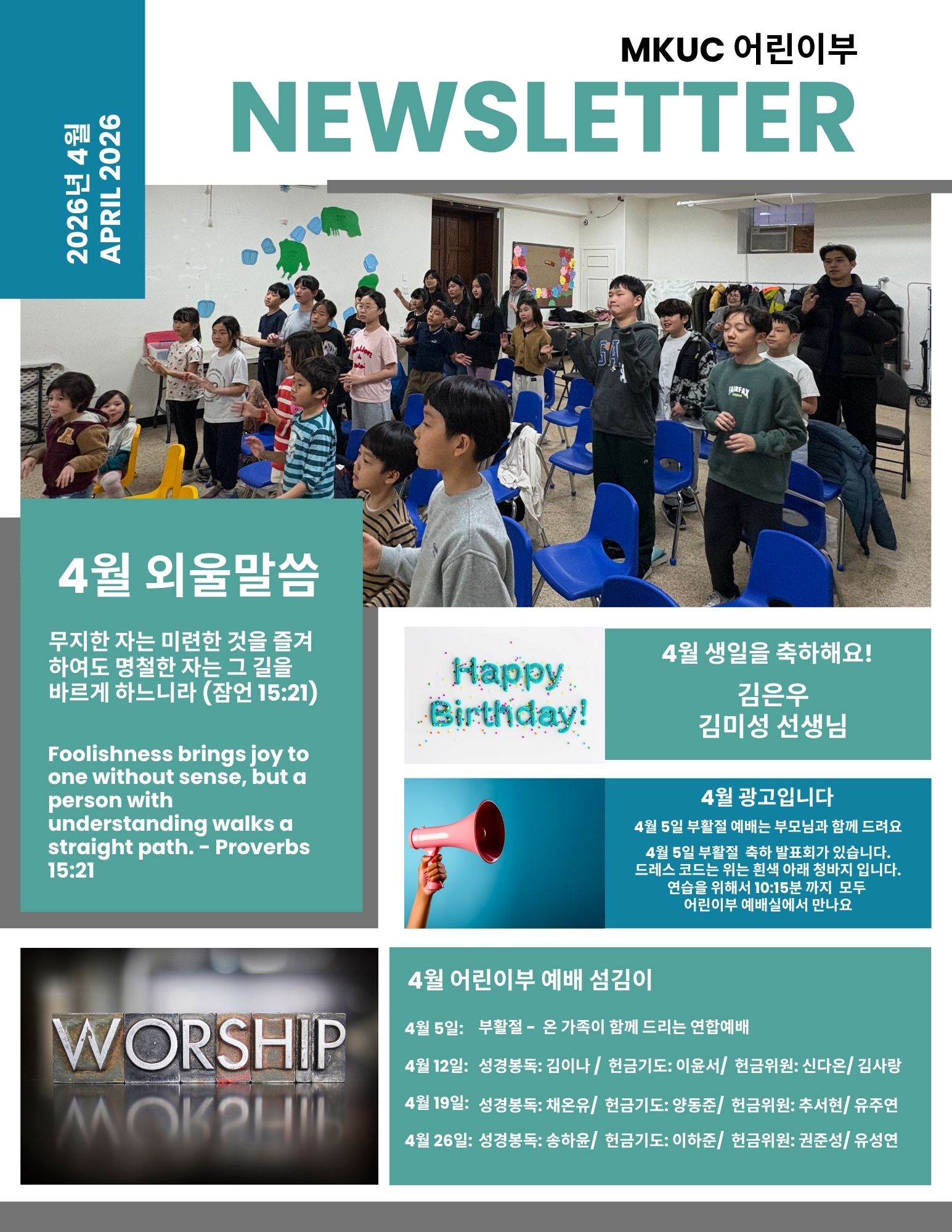 MKUC 어린이부 2026년 4 월 Newsletter 입니다 - Part 1