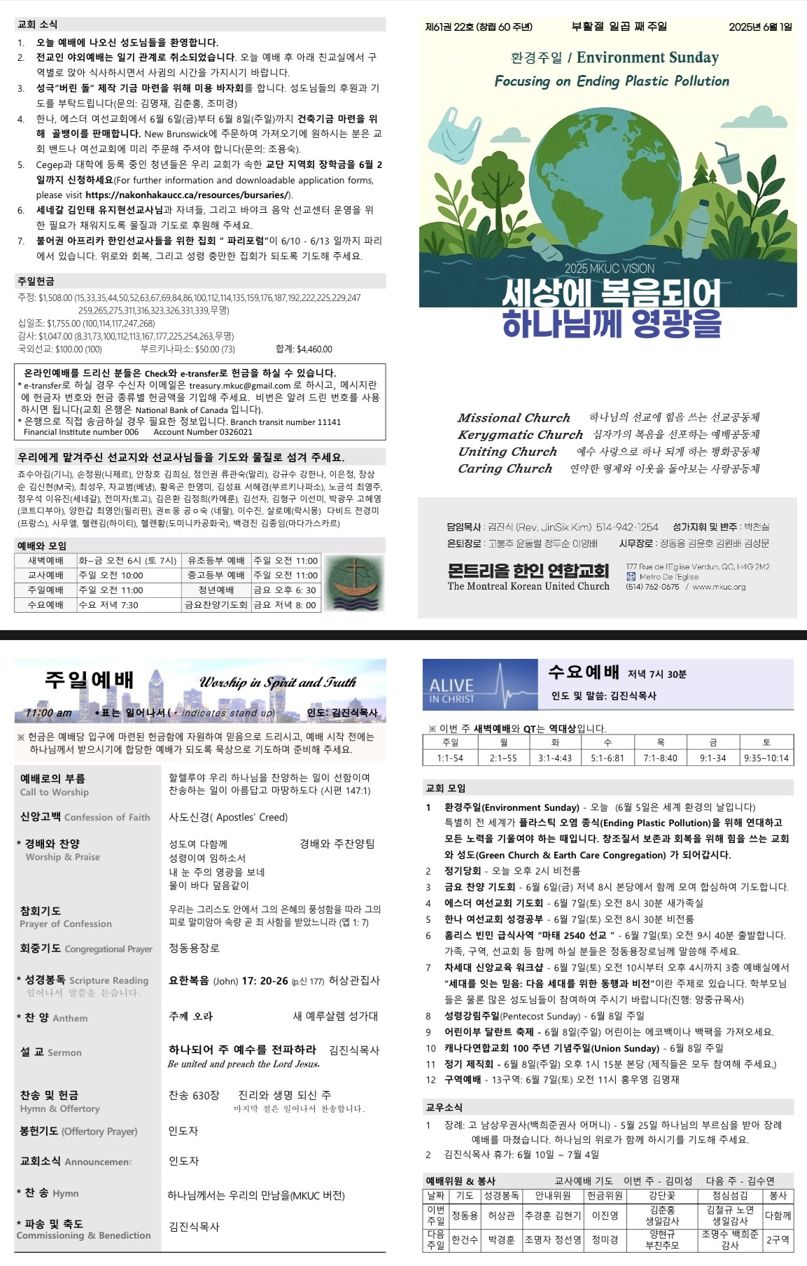 6월 1일 환경 주일 주보