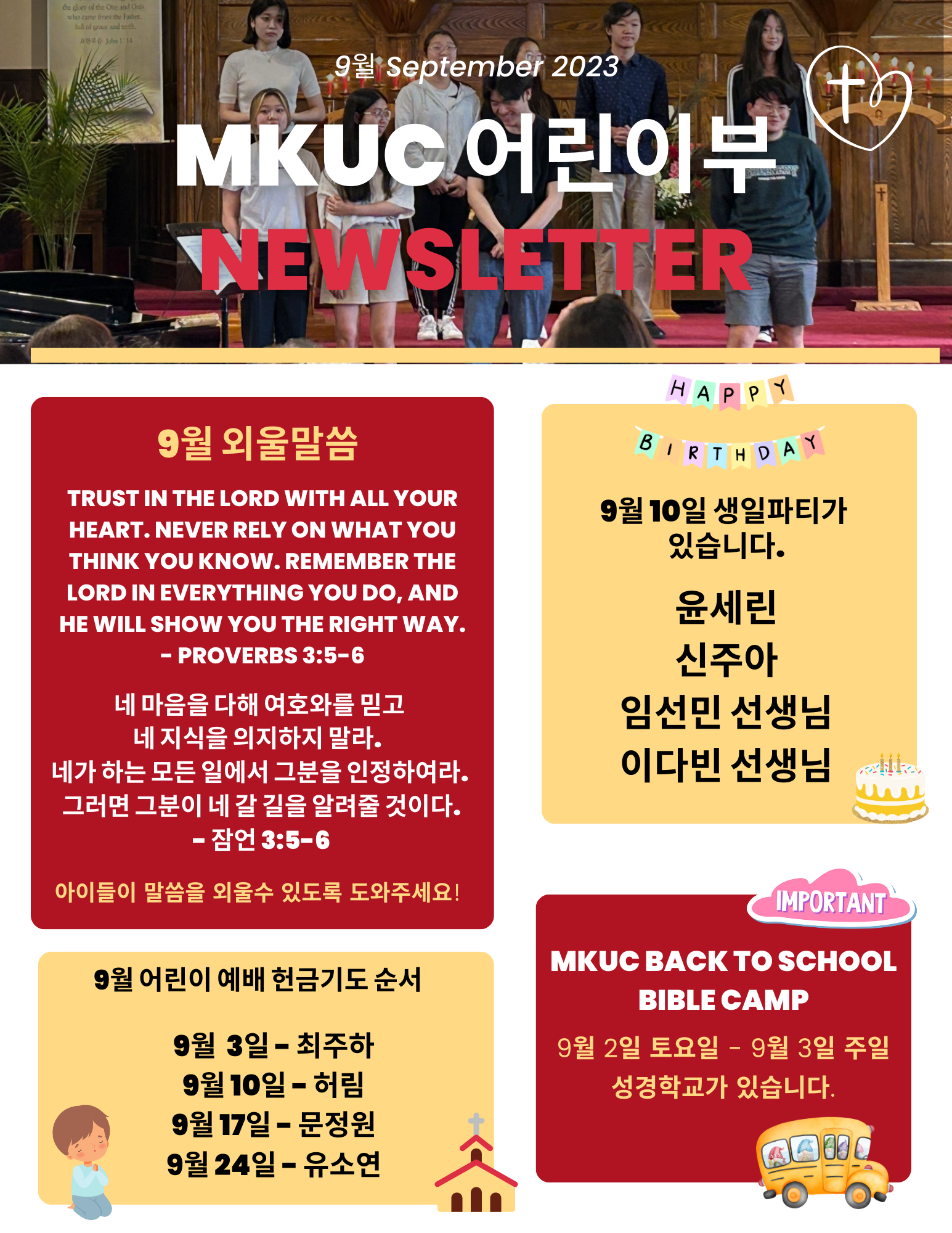 MKUC 어린이부 9월 Newsletter 입니다 - PART 1